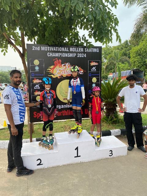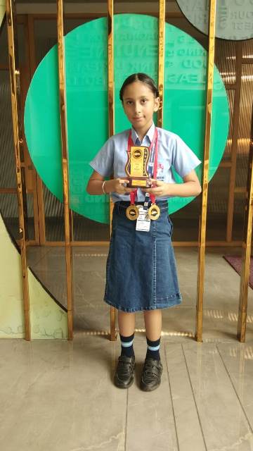 We are thrilled to announce that Jasmehak Kaur, a talented student of Class 4, has not only made us proud but has also shown exceptional prowess in roller skating by clinching 2 Gold Medals and a cash prize of Rs 1100/- in the 2nd Motivational Roller Skating Championship held at Sector 78 , Sports Stadium on 21 July 2024, under the 7-9 age group girls (professional category). Jasmehak was also bestowed with a prestigious trophy for her outstanding performance in the 5th and 6th National Open Roller Skating Championships conducted by the RSFI. Her consistent excellence and competitive spirit have set a shining example for young athletes across the country.